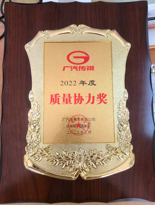 我司榮獲廣汽傳祺2022年度“質量協力獎”